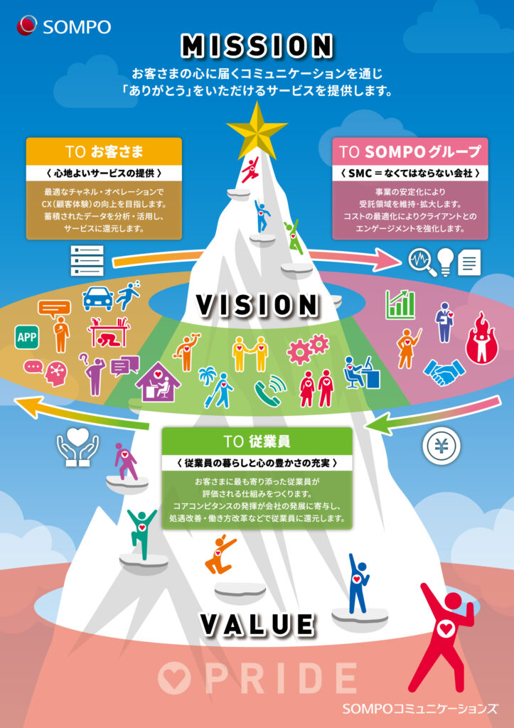 弊社、SOMPOコミュニケーションズ(SMC)は、SOMPOグループ約5万人の中で、唯一のコンタクトセンター専門会社として機能しています。